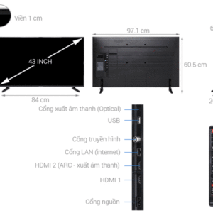 | Kích thước Tivi không chân đế (ngang/cao.dày) | 97.1cm x 56.4cm x 6cm |